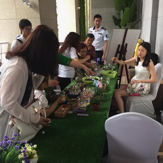 大人紛紛拿起青翠芬芳的粽葉,亮絕活兒。拿兩片油亮的粽葉,在手上圍成一個小圓錐,再把泡好的糯米慢慢灌入,然后把粽葉將糯米裹好,最后再用莖葉仔仔細細包扎好,一個可愛又美味的粽子就誕生了!另一邊,天空森林城市也為小孩準備了節(jié)日禮物。有的在工作人員的指導下,親手打造一個萌萌噠多肉植物盆栽景觀;有的則拿著“小丑”送的氣球,玩得不亦樂乎!