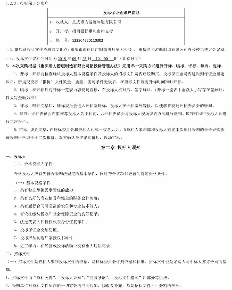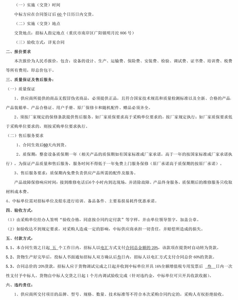 重慶市港航管理局16.9米、20米工作艇發電機組組招標公告