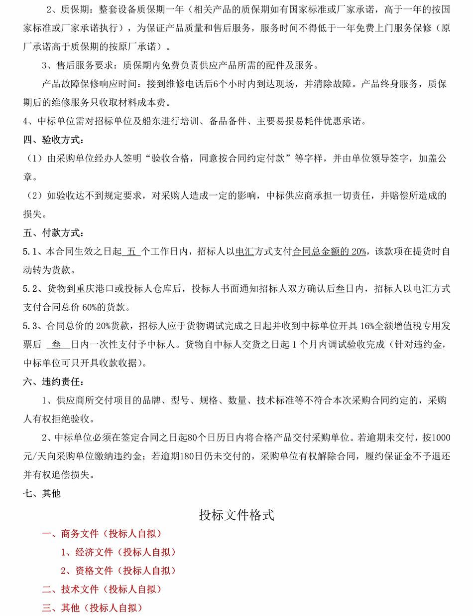 四川青川縣23米海事救助艇機電設備采購機...