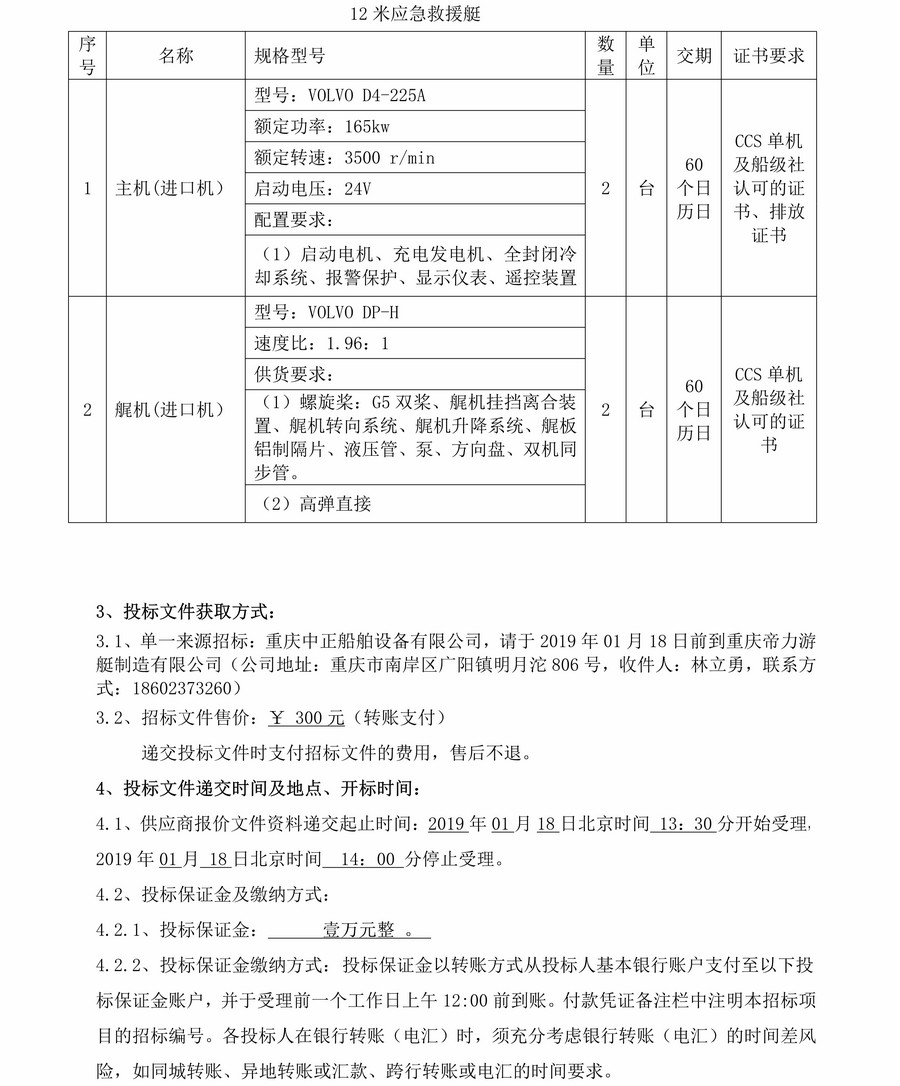 武勝35米海事救助艇、12米應(yīng)急救援艇機(jī)電設(shè)備采購(gòu)