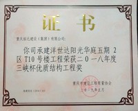 ? 2019年5月,洋世達(dá)陽光華庭五期2區(qū)T10號樓工程榮獲重慶市建筑工程質(zhì)量協(xié)會頒發(fā)的“二O一八年度三峽杯優(yōu)質(zhì)結(jié)構(gòu)工程獎”