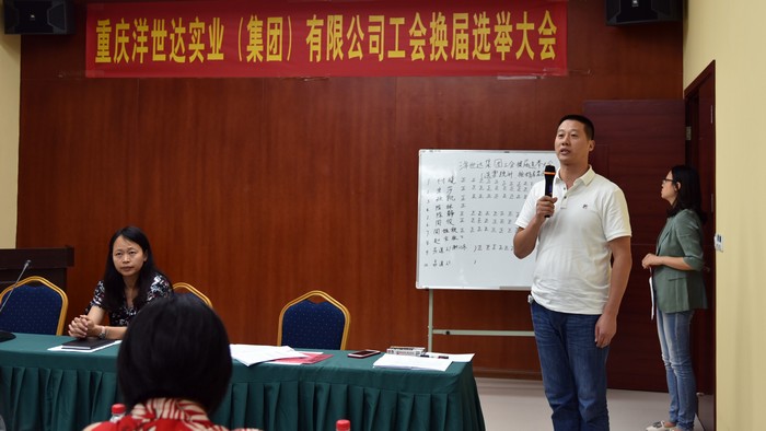選舉大會環節,由物業長壽分公司宋渝副總、集團公司王瑤擔任計票員,驕陽公司楊鵬經理擔任監票員在全場人員見證下對提名的8名候選人進行公開投票。會議通過無記名投票和差額選舉,產生了7名新一屆的集團工會委員。