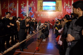 拔河對(duì)抗賽,是公司歷年“春節(jié)年拜會(huì)”上的傳統(tǒng)經(jīng)典項(xiàng)目。下午1點(diǎn)30分,比賽戰(zhàn)鼓敲響,集團(tuán)公司、各子公司分別組成8支參賽隊(duì)伍,進(jìn)行分組對(duì)抗賽。比賽現(xiàn)場(chǎng),參賽隊(duì)員摩拳擦掌,齊心協(xié)力,干勁十足;啦啦隊(duì)員吶喊助威,加油鼓勁,全情投入,掀起了一輪又一輪的高潮。經(jīng)過(guò)緊張激烈的多輪對(duì)抗賽,物管公司蟬聯(lián)第一名,集團(tuán)公司、帝力公司分獲二、三名。對(duì)抗賽結(jié)束后,由各公司優(yōu)秀隊(duì)員組成的“明星聯(lián)隊(duì)”,還與冠軍隊(duì)進(jìn)行了一場(chǎng)頗具實(shí)力的拔河表演賽。集團(tuán)公司領(lǐng)導(dǎo)現(xiàn)場(chǎng)為獲獎(jiǎng)?wù)哳C獎(jiǎng)。