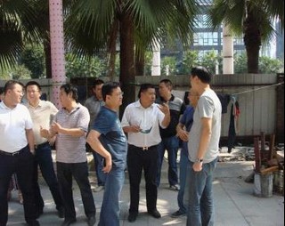 2012年9月5日下午,集團(tuán)公司楊勇董事長帶領(lǐng)集團(tuán)公司郭坤倫常務(wù)副總裁、張志興副總裁以及各部門負(fù)責(zé)人,對(duì)地處長壽區(qū)的凱誼公司、摩爾公司、物管長壽分公司2012年的經(jīng)營管理工作進(jìn)行了調(diào)研。楊勇董事長一行首先察看了“世紀(jì)廣場”和“圣天湖”項(xiàng)目現(xiàn)場,隨后召開了座談會(huì)。集團(tuán)公司總裁、凱誼公司和摩爾公司總經(jīng)理?xiàng)顒伲瑤ьI(lǐng)長壽區(qū)各子公司副總經(jīng)理及相關(guān)部門負(fù)責(zé)人陪同調(diào)研。